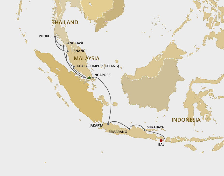 Malaysia’s dynamic capital is a melting pot of skyscrapers, Islamic architecture and British Colonial buildings offering a futuristic cityscape with an enduring nod to yesteryear. Home to some of Asia’s most opulent shopping malls, Kuala Lumpur’s skyline is dominated by the famous Petronas and Menara Kuala Lumpur Towers. Ships will dock in Port Klang.