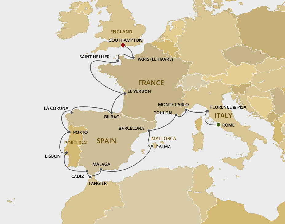 Málaga is the lively capital of the Costa del Sol, famed for its beaches and mild climate. It is a city of narrow streets, whitewashed houses, churches and sunny plazas. Málaga also serves as a popular starting point for excursions to splendid Granada and the famed Alhambra. Ships will dock at the Málaga cruise terminal.