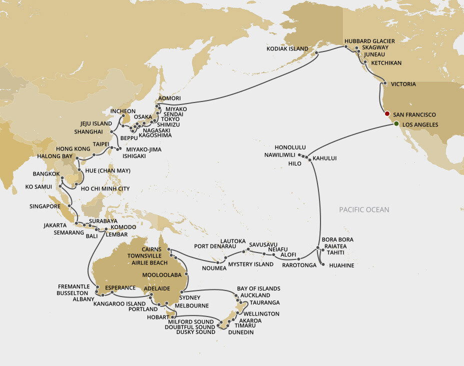 In downtown Auckland you can enjoy world-class dining, shopping, and sights. If you've a mind to explore, visit the island volcano of Rangitoto, or head to Waiheke, known as 'the island of wine' each are within a 40 minute ferry ride of your port.