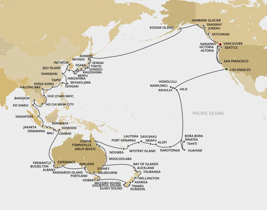 In downtown Auckland you can enjoy world-class dining, shopping, and sights. If you've a mind to explore, visit the island volcano of Rangitoto, or head to Waiheke, known as 'the island of wine' each are within a 40 minute ferry ride of your port.