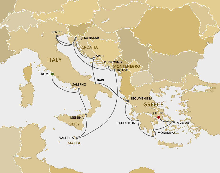 The famous medieval city of Dubrovnik, known as 'the pearl of the Adriatic', is found behind massive stonewalls that protect winding streets, charming squares, and red-roofed buildings dating back to the 7th century. Larger ships will dock at Gruz Harbour, while some smaller ships will anchor offshore and tender guests to the Old Harbour.