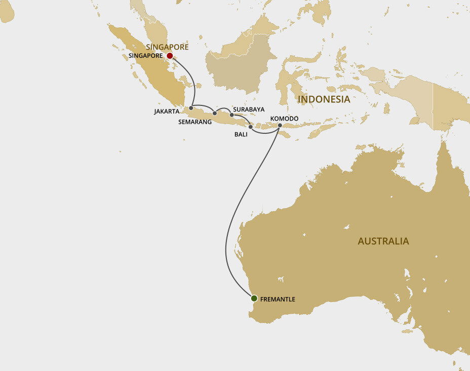 Benoa is located on the southern tip of Bali and is the key gateway for travellers exploring this Indonesian island. The port is approximately 12 kms (7.5 miles) from the bustling city of Denpasar - a journey of around 30 minutes. You'll dock directly at the terminal, allowing easy access to transport options.