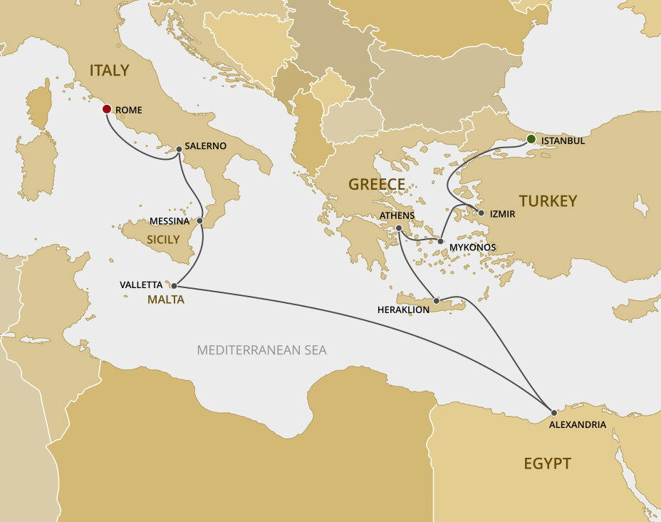 Once the seat of two massive empires, Istanbul has been shaped by its colourful history. From massive Byzantine churches, to towering Ottoman mosques, history can be found in each building no matter what part of the city you wander through. Ships will dock at the Galataport cruise ship terminal which is a 40 minute drive from the Istanbul Airport.