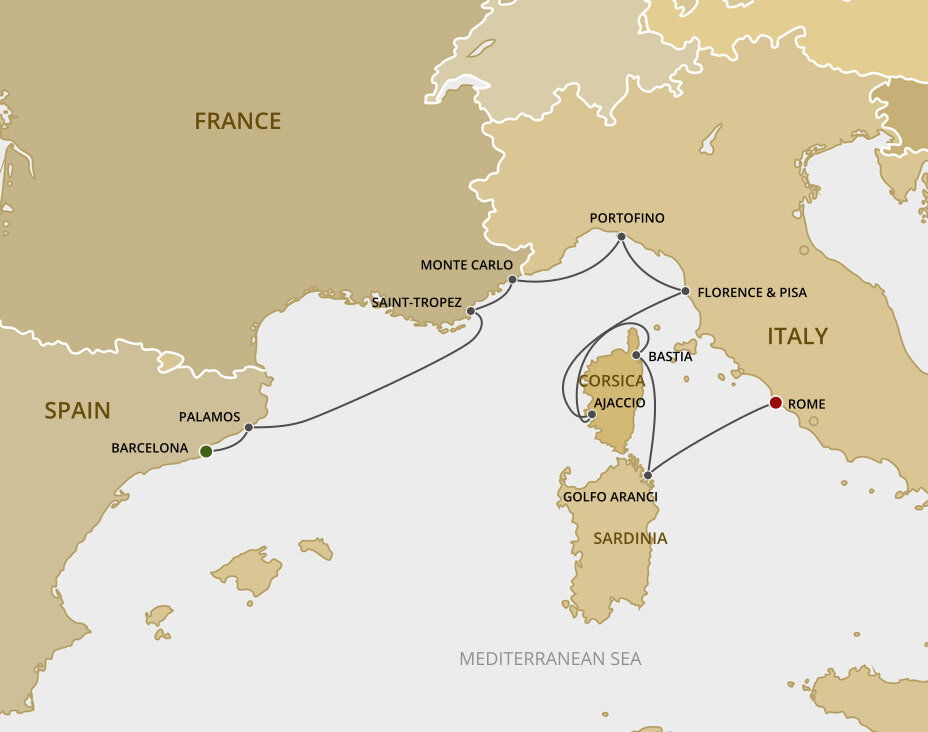 A glitzy, glamorous coastal resort, Saint Tropez is the French Riviera hotspot of choice for A-listers and flotillas of gleaming yachts. While spectacular white sand beaches line the Gulf de Saint-Tropez, the Provencal countryside rises up behind the town with medieval villages, vineyards and lavender fields. Ships will anchor offshore and tender guests to shore.