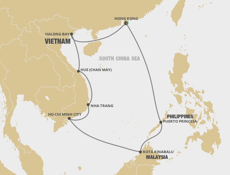 The capital city of Palawan Island in the Philippines is a fascinating landscape of caves, forests, and coastline. Often acclaimed as the cleanest and greenest city in the Philippines, it offers a wealth of attractions such as turquoise water, white-sand beaches, underground rivers, and wildlife reserves. Ships will dock at the port.