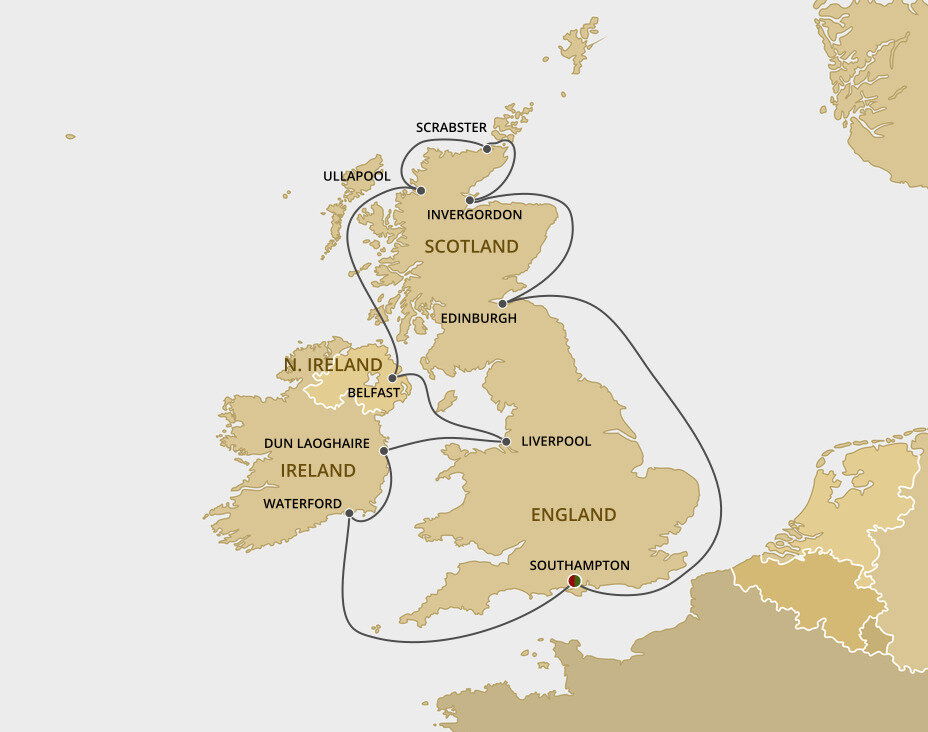 Northern Ireland's capital, Belfast, enjoys a wonderful setting of high hills, sea lough and river valley. Reborn as a cool, modern city, it has successfully left its troubles behind, emerging as a hotbed of culture and architecture, where the comfort of a cosy pub is never far away. Ships will dock in Belfast Harbour.
