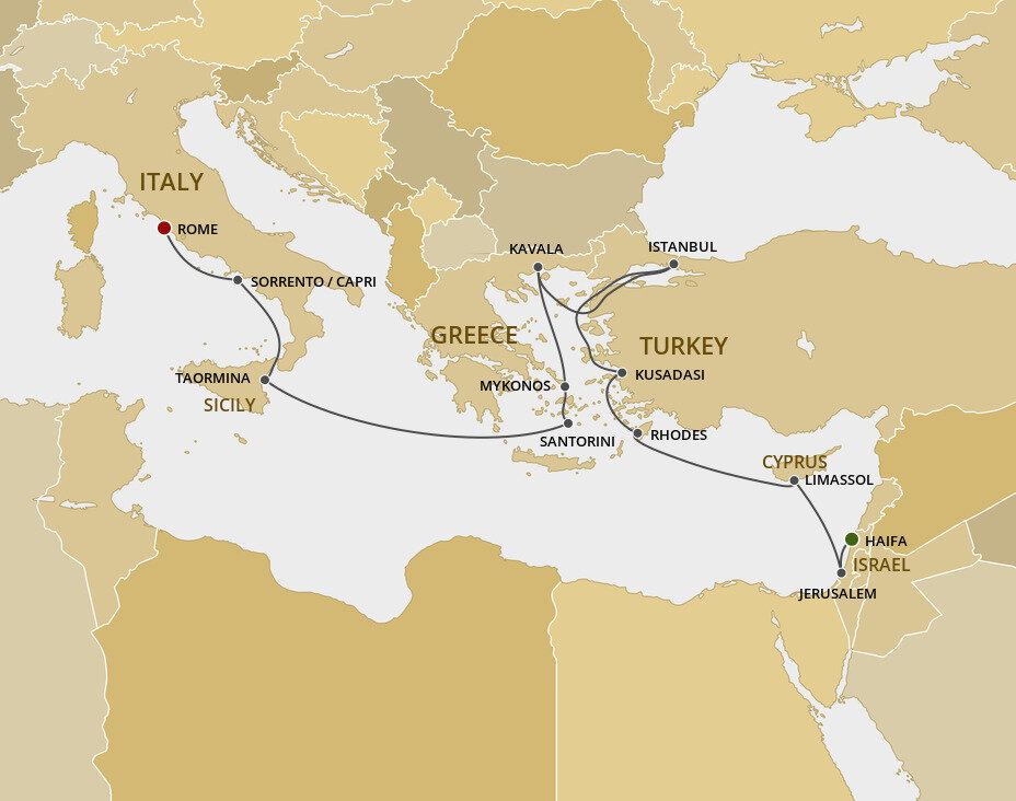 The vibrant city of Limassol is located on Akrotiri Bay in the shadow of the Troodos mountains. Its the jumping off point to explore the ancient riches of Cyprus. See ruins, majestic mountains and scenery, stunning beaches, and vast groves of lemons, oranges and olives. Ships will dock at the cruise terminal.