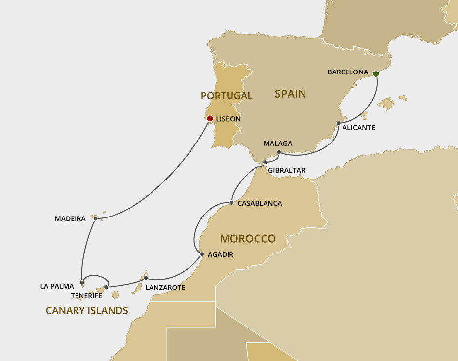 Málaga is the lively capital of the Costa del Sol, famed for its beaches and mild climate. It is a city of narrow streets, whitewashed houses, churches and sunny plazas. Málaga also serves as a popular starting point for excursions to splendid Granada and the famed Alhambra. Ships will dock at the Málaga cruise terminal.