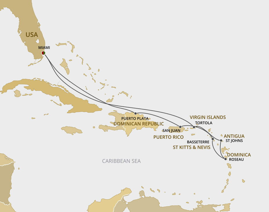 The largest of the British Virgin Islands, Tortola is known for its shimmering beaches, oleander and hibiscus-covered mountainsides, and quaint towns tucked along coves. This early home to Blackbeard and Captain Kidd maintains its salty pirate legacy and rum-making traditions today. Ships will dock or anchor in Road Town Harbour.