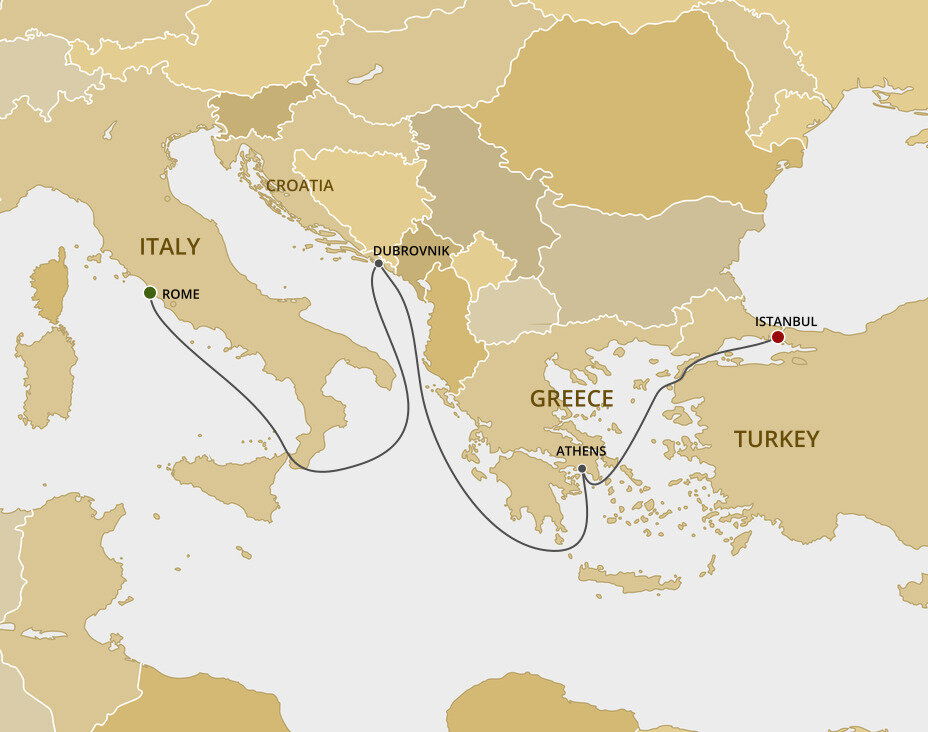 Once the seat of two massive empires, Istanbul has been shaped by its colourful history. From massive Byzantine churches, to towering Ottoman mosques, history can be found in each building no matter what part of the city you wander through. Ships will dock at the Galataport cruise ship terminal which is a 40 minute drive from the Istanbul Airport.