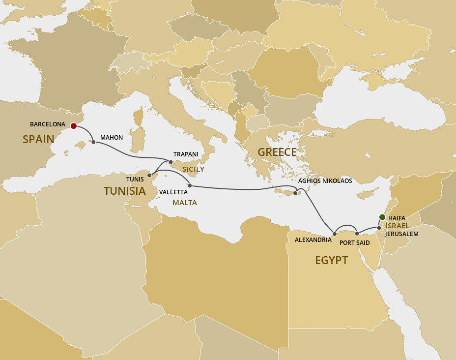 Ashdod is the largest port in Israel and the gateway to the Holy Land. Located about 64 kilometers (40 miles) away, approximately a 1-hour drive.