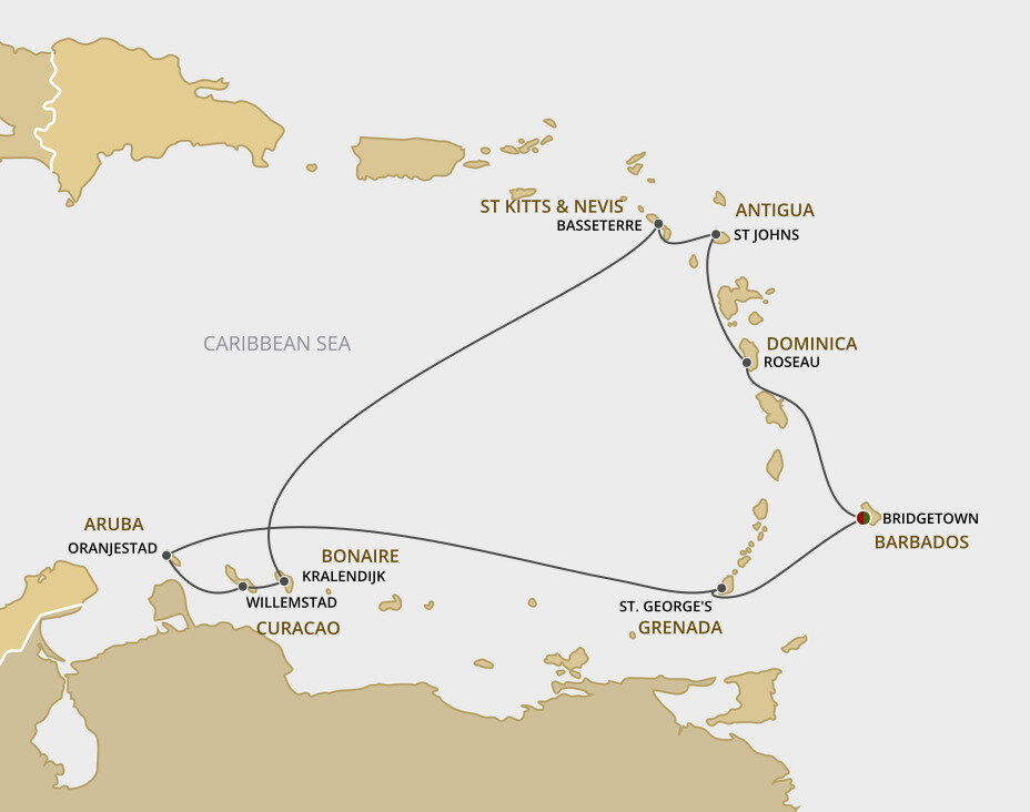 Bridgetown, the captivating capital of Barbados, combines faded colonial history, captivating tradition, and vivid white beaches. Stately colonial buildings intermingle with colourful wooden homes, open-air markets and catch-of-the-day cafés. Ships will dock at this port.