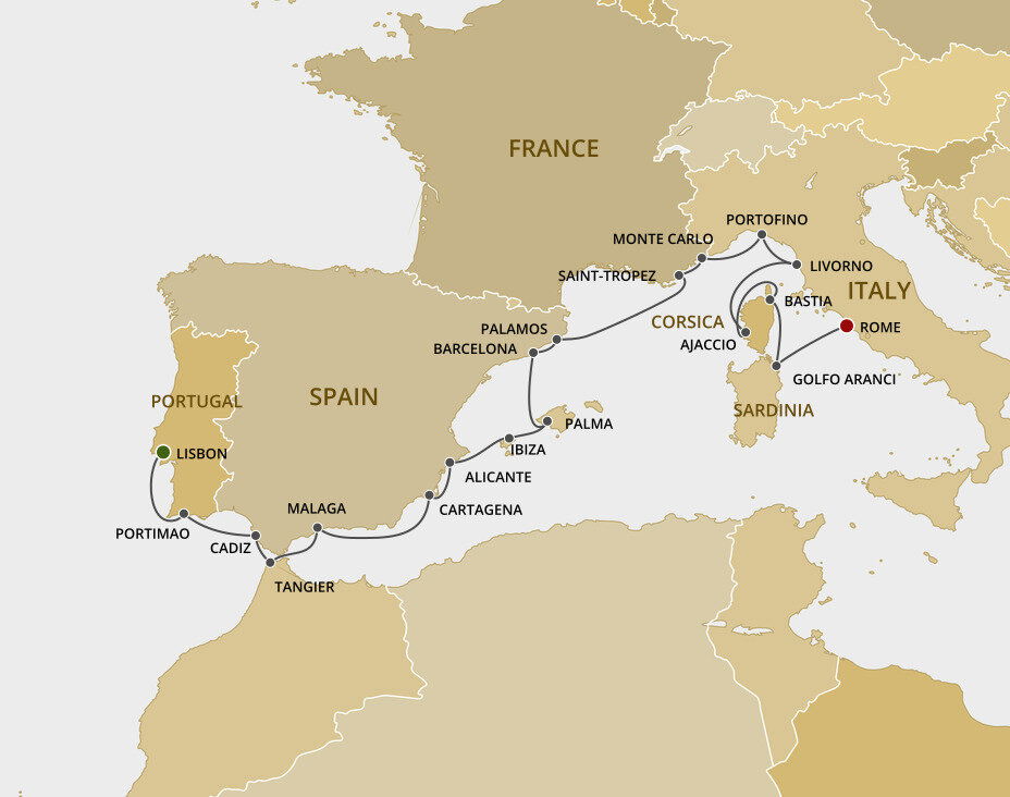 A glitzy, glamorous coastal resort, Saint Tropez is the French Riviera hotspot of choice for A-listers and flotillas of gleaming yachts. While spectacular white sand beaches line the Gulf de Saint-Tropez, the Provencal countryside rises up behind the town with medieval villages, vineyards and lavender fields. Ships will anchor offshore and tender guests to shore.