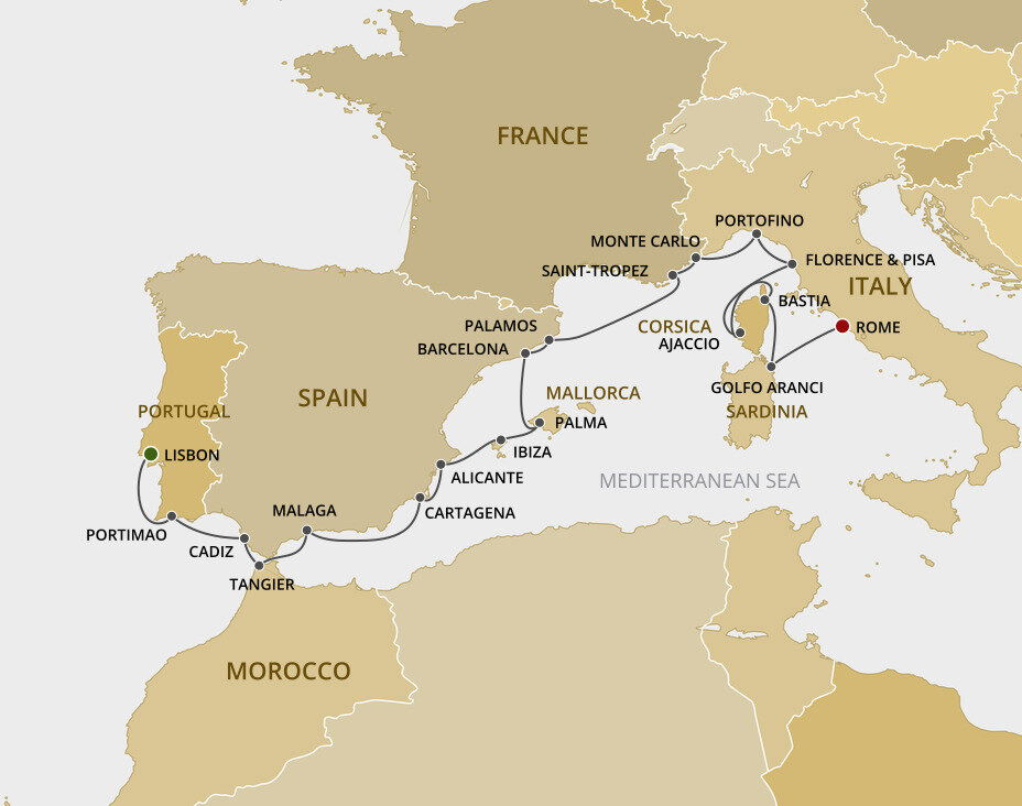 A glitzy, glamorous coastal resort, Saint Tropez is the French Riviera hotspot of choice for A-listers and flotillas of gleaming yachts. While spectacular white sand beaches line the Gulf de Saint-Tropez, the Provencal countryside rises up behind the town with medieval villages, vineyards and lavender fields. Ships will anchor offshore and tender guests to shore.