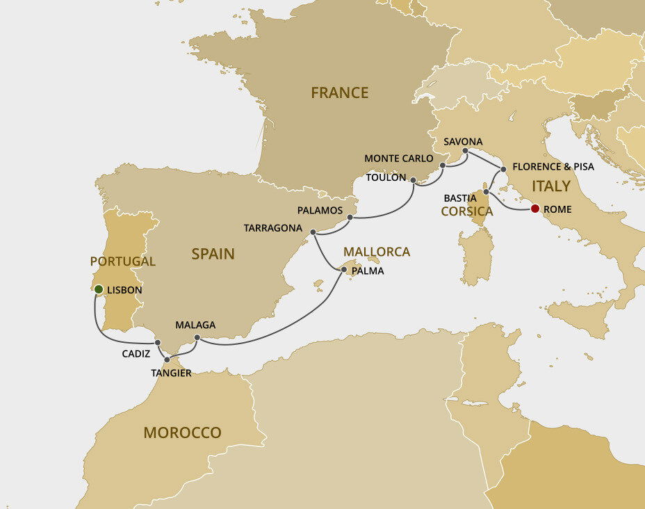 Málaga is the lively capital of the Costa del Sol, famed for its beaches and mild climate. It is a city of narrow streets, whitewashed houses, churches and sunny plazas. Málaga also serves as a popular starting point for excursions to splendid Granada and the famed Alhambra. Ships will dock at the Málaga cruise terminal.