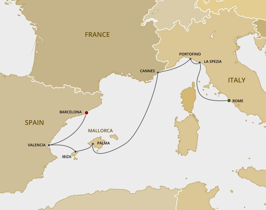 The quintessential Côte d'Azur resort town, Cannes has long been a playground for the rich and famous. Its epicentre is La Croisette, a boutique-lined boulevard with a legendary seven-mile beach. Ships will anchor offshore and tenders will be provided to the shore.