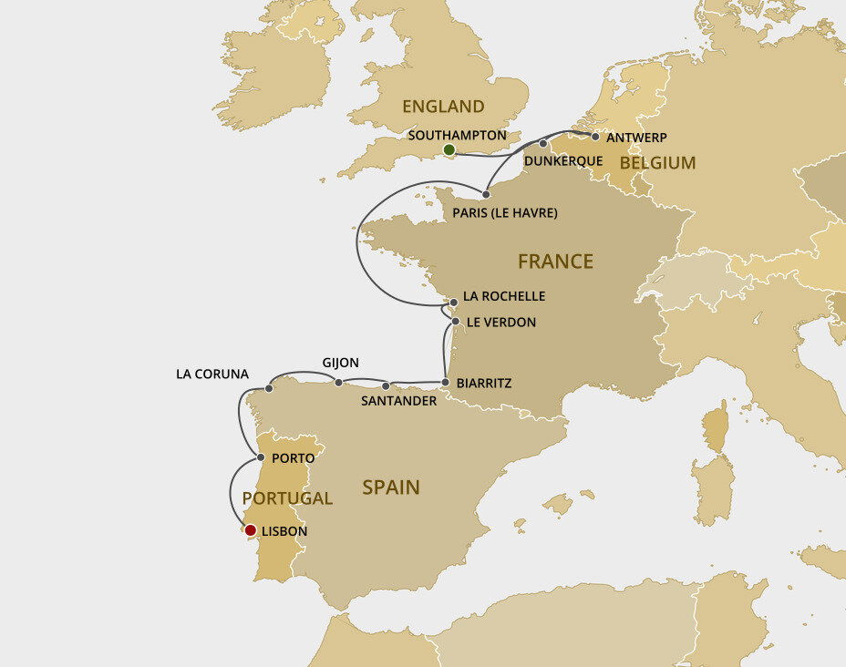 Biarritz, an elegant seaside town on southwestern France’s Basque coast, has been a popular resort since European royalty began visiting in the 1800s. The coastline is dotted with rocks shaped by the ocean, buildings and villas in eclectic architectural styles and long, sandy beaches. Ships will anchor offshore in Saint Jean de Luz.