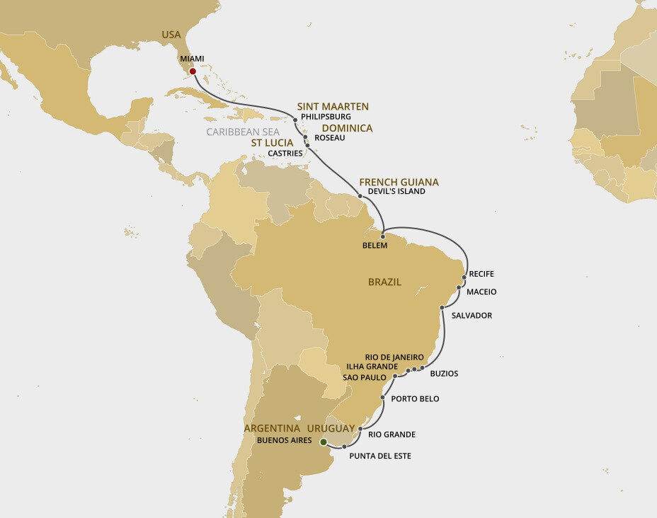 Brazil's third largest island, famed for its tropical scenery and gorgeous beaches, has an unusual history. Once a leper colony and later a prison, today the entire island is a protected reserve where a myriad of wildlife including iguanas, monkeys and birds can be found in the dense Atlantic forest. Ships will anchor offshore and tender guests ashore to Vila do Abraão.