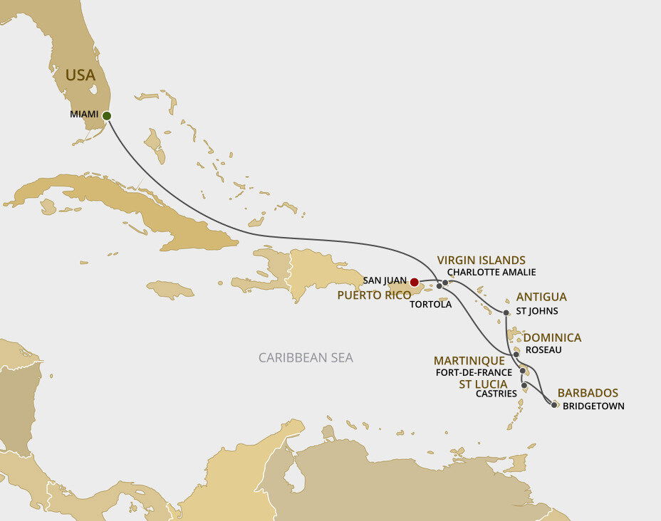The largest of the British Virgin Islands, Tortola is known for its shimmering beaches, oleander and hibiscus-covered mountainsides, and quaint towns tucked along coves. This early home to Blackbeard and Captain Kidd maintains its salty pirate legacy and rum-making traditions today. Ships will dock or anchor in Road Town Harbour.