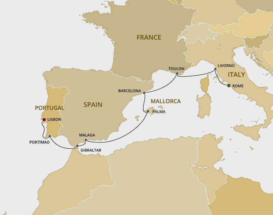 Málaga is the lively capital of the Costa del Sol, famed for its beaches and mild climate. It is a city of narrow streets, whitewashed houses, churches and sunny plazas. Málaga also serves as a popular starting point for excursions to splendid Granada and the famed Alhambra. Ships will dock at the Málaga cruise terminal.