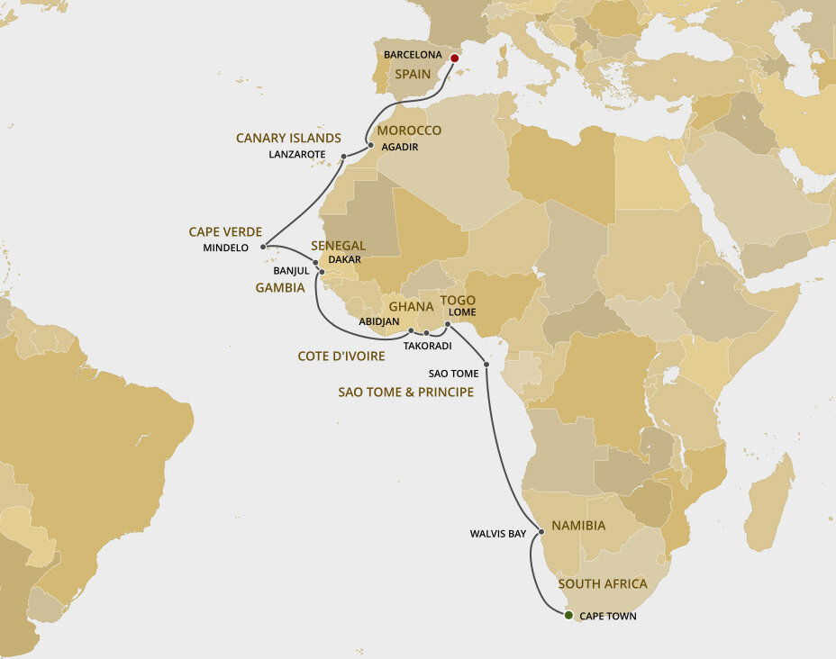 The capital of Senegal, Dakar, is an enigmatic and endlessly explorable city. Jutting out on the Cape Vert Peninsula with glorious surf-fringed beaches, the former colonial trading post is the westernmost point of the African continent. Ships will dock at the Mole 1 Terminal in Port de Dakar.