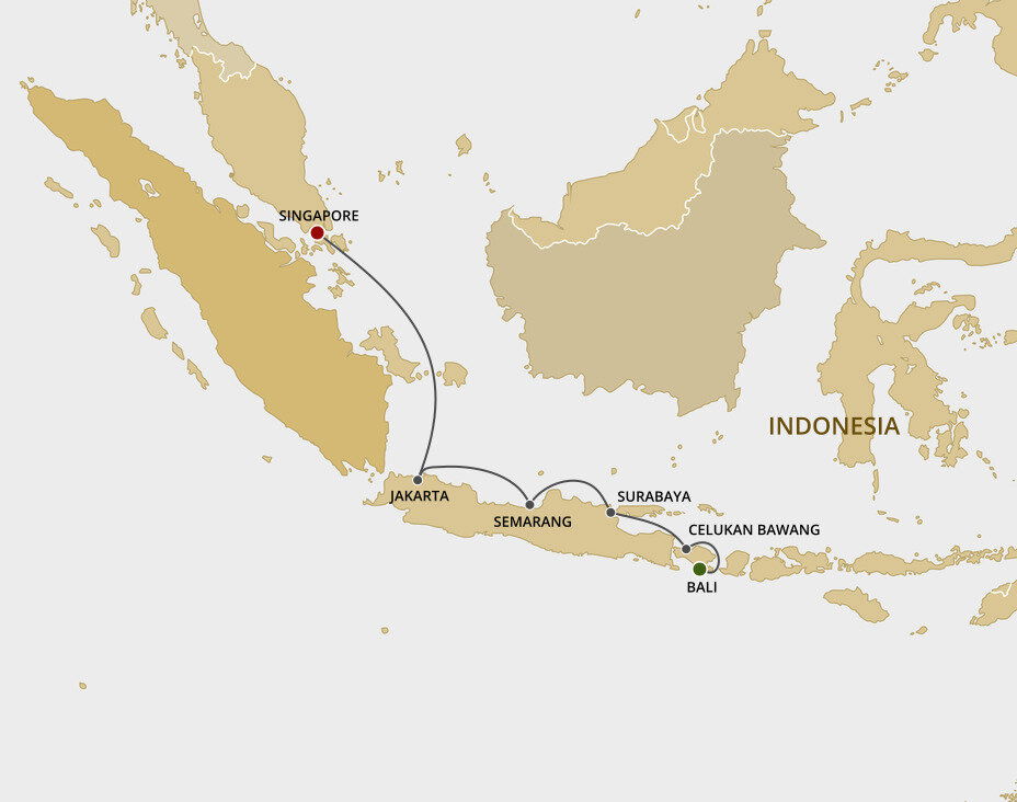 Benoa is located on the southern tip of Bali and is the key gateway for travellers exploring this Indonesian island. The port is approximately 12 kms (7.5 miles) from the bustling city of Denpasar - a journey of around 30 minutes. You'll dock directly at the terminal, allowing easy access to transport options.
