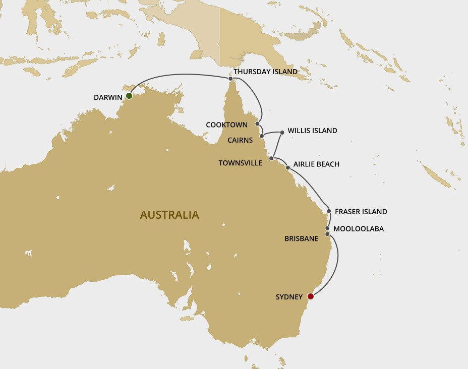 A quaint frontier town, scenically located on Cape York Peninsula in Far North Queensland, Cooktown is the site of Australia’s first European settlement. It is a beautiful, unspoilt, small historic coastal town surrounded by stunning countryside. Ships will anchor offshore and tenders will be provided to the port.
