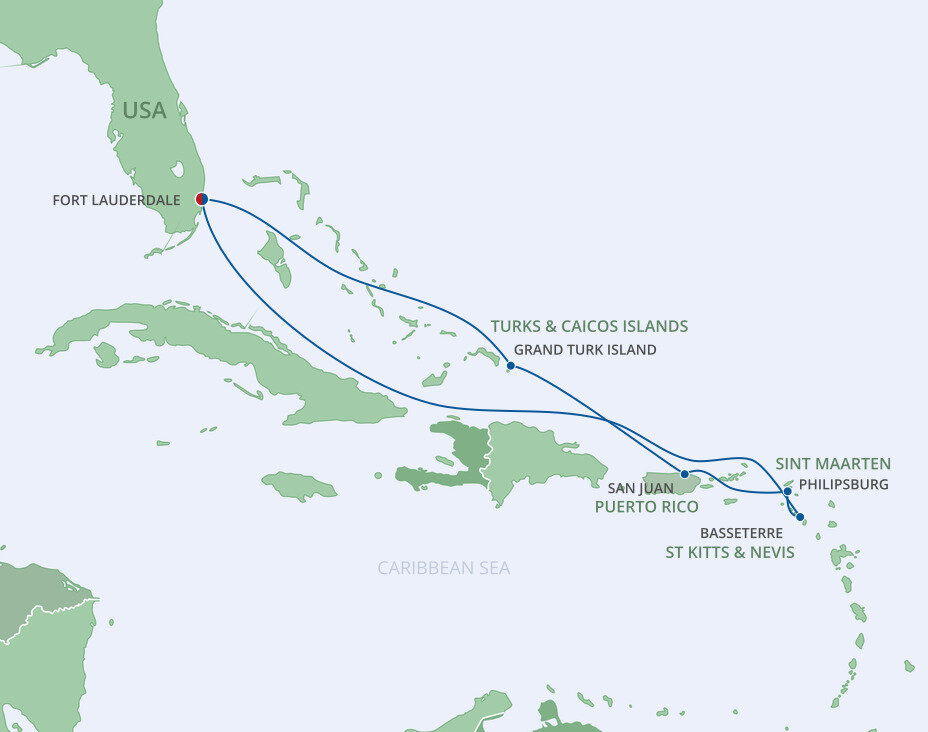 Beach masterpieces of silky white sand and sparkling water shifting from turquoise to royal blue welcome you to idyllic Grand Turk. The capital of the Turks and Caicos Islands is a small island bursting with turn-of-the-century charm, retaining the look and feel of the Caribbean 40 years ago. Ships will dock at the Grand Turk Cruise Centre.