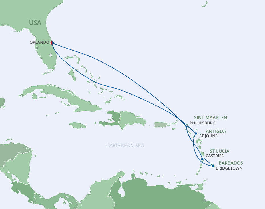Antigua has a beach for every day of the year— literally. But the island experience goes beyond 365 distinct ribbons of white sand and clear waters. In the capital city of St. John's, you’ll discover charming candy-colored architecture, lively markets, and a beautiful baroque cathedral. And smiling locals greet you everywhere you go. On the southern coast, you can explore Nelson’s Dockyard, a centuries-old British naval base built by Admiral Horatio Nelson. Past Antigua’s yacht-studded coastline, you’ll find upscale boutiques, wild forest trails, hidden coves, and coral reefs bustling with tropical fish. But the best way to really see the island is from up above, so cruise to Antigua and hop into a helicopter for a panoramic look at lush jungles, golden beaches, and the nearby volcanic island, Montserrat.