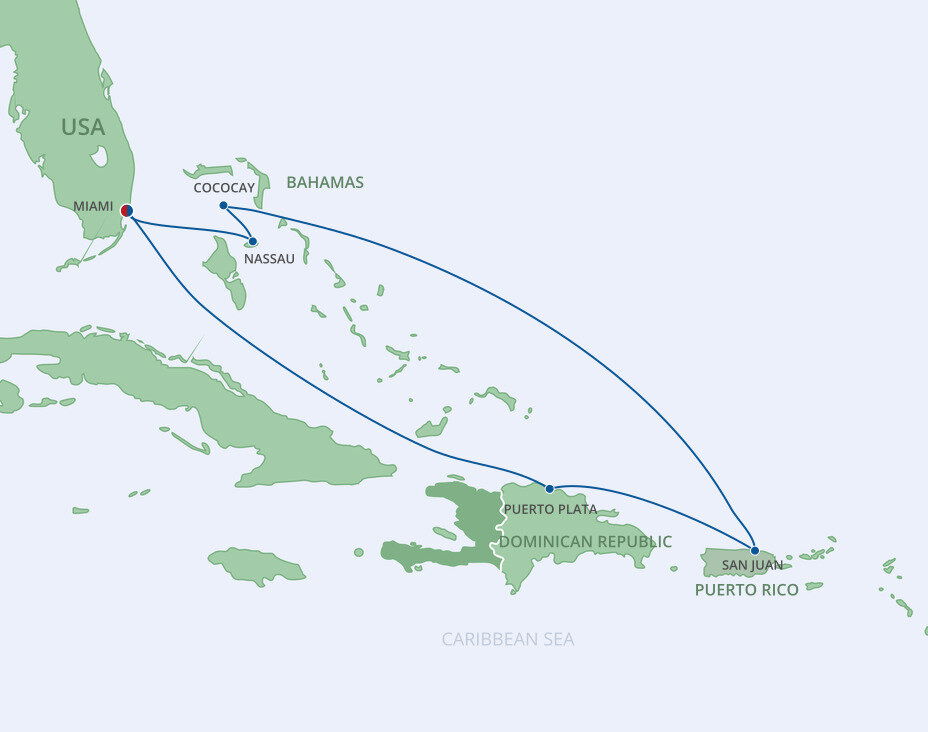 This multicultural city where the sun rules supreme is more than just a cruise port. Visitors from all over the world enjoy Miami’s famous Art Deco buildings, family-friendly zoos and romantic palm tree-lined streets filled with fantastic restaurants. Don’t forget about the white sandy beaches and year-round warm weather, perfect for relaxing before or after your Caribbean cruise from Miami.