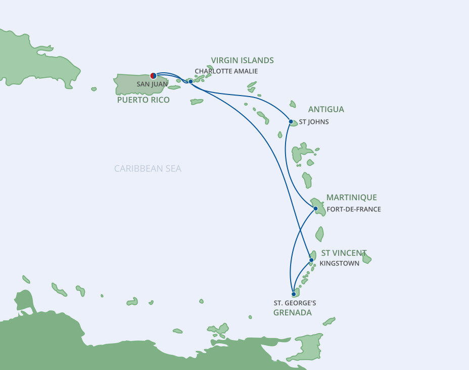 Antigua has a beach for every day of the year— literally. But the island experience goes beyond 365 distinct ribbons of white sand and clear waters. In the capital city of St. John's, you’ll discover charming candy-colored architecture, lively markets, and a beautiful baroque cathedral. And smiling locals greet you everywhere you go. On the southern coast, you can explore Nelson’s Dockyard, a centuries-old British naval base built by Admiral Horatio Nelson. Past Antigua’s yacht-studded coastline, you’ll find upscale boutiques, wild forest trails, hidden coves, and coral reefs bustling with tropical fish. But the best way to really see the island is from up above, so cruise to Antigua and hop into a helicopter for a panoramic look at lush jungles, golden beaches, and the nearby volcanic island, Montserrat.