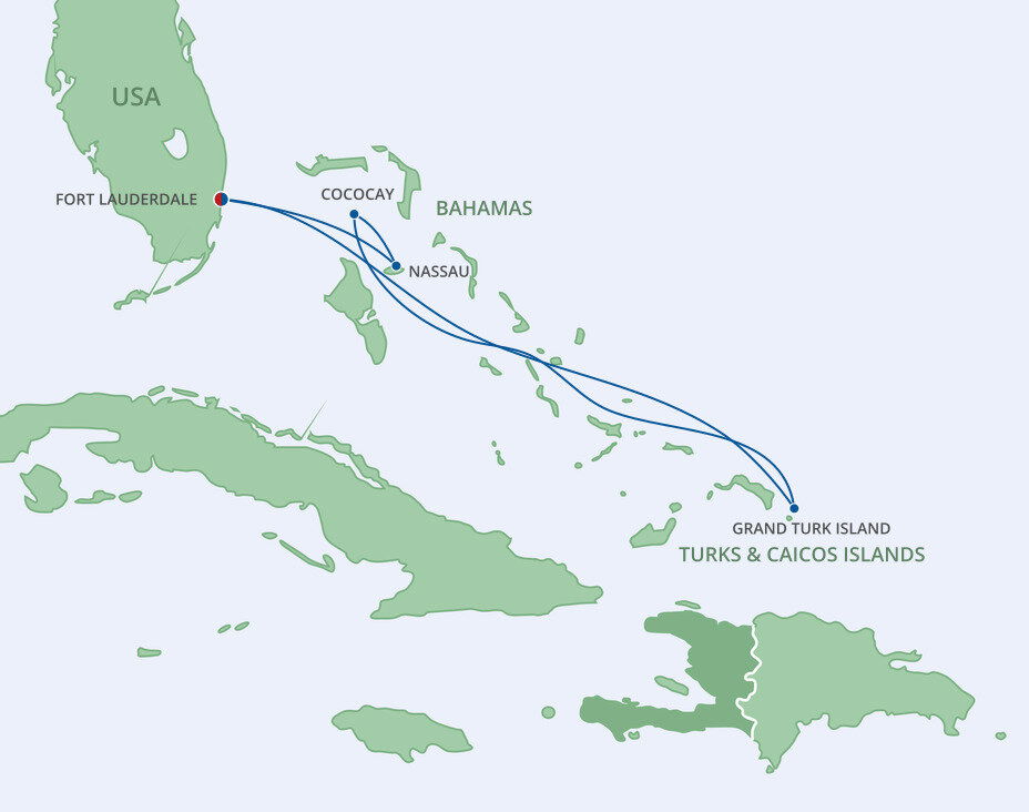 Beach masterpieces of silky white sand and sparkling water shifting from turquoise to royal blue welcome you to idyllic Grand Turk. The capital of the Turks and Caicos Islands is a small island bursting with turn-of-the-century charm, retaining the look and feel of the Caribbean 40 years ago. Ships will dock at the Grand Turk Cruise Centre.