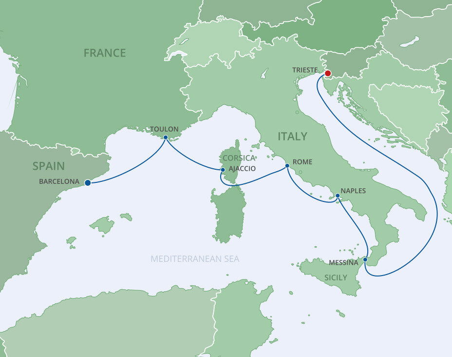 Your ship will dock at the Trieste Cruise Terminal, located right in the heart of the city. This makes it easy to explore Trieste and visit key attractions like Piazza Unità d'Italia, the Roman Theatre, and Miramare Castle which are easily accessible by foot or a short bus ride.
