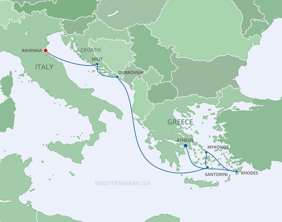 Welcome to the ancient city of Athens, the 'Cradle of Western Civilisation'. If your schedule is tight, savor traditional Greek coffee at a café with a view of the city's iconic ruins, soaking in the historic ambiance before your cruise departs. If you've got time to explore the Acropolis stands as a must-see, a UNESCO World Heritage site, adorned with iconic structures like the Parthenon and nearby Temple of Olympian Zeus. The nearby Acropolis Museum showcases stunning artifacts from ancient Greece, providing deeper insight into the city's heritage.