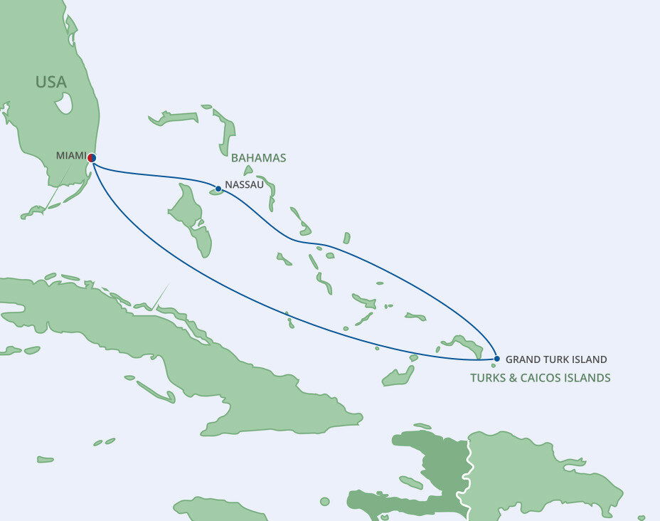 Beach masterpieces of silky white sand and sparkling water shifting from turquoise to royal blue welcome you to idyllic Grand Turk. The capital of the Turks and Caicos Islands is a small island bursting with turn-of-the-century charm, retaining the look and feel of the Caribbean 40 years ago. Ships will dock at the Grand Turk Cruise Centre.