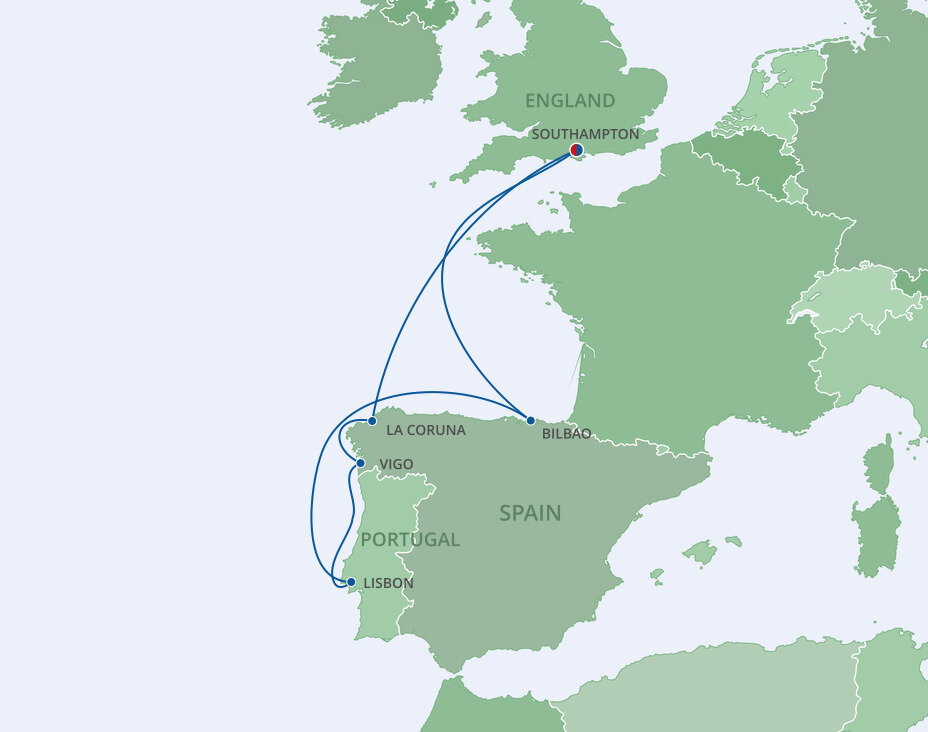 Surrounded by green mountains and lined by the beautiful blue water of the Bay of Biscay, Bilbao is magnificent mix of historic and spectacular modern architecture. Famed for its Guggenheim Museum, clad in glimmering titanium, this enormous structure is a work of art itself. Ships will dock in Getxo, which is a 20 minute drive from Bilbao.