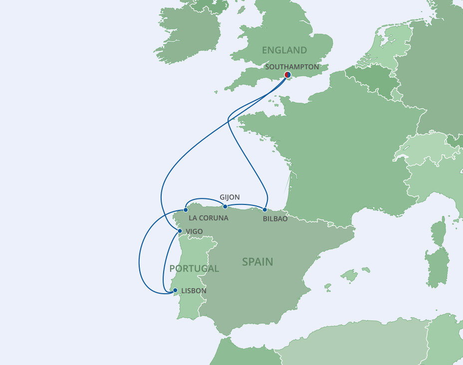 Surrounded by green mountains and lined by the beautiful blue water of the Bay of Biscay, Bilbao is magnificent mix of historic and spectacular modern architecture. Famed for its Guggenheim Museum, clad in glimmering titanium, this enormous structure is a work of art itself. Ships will dock in Getxo, which is a 20 minute drive from Bilbao.