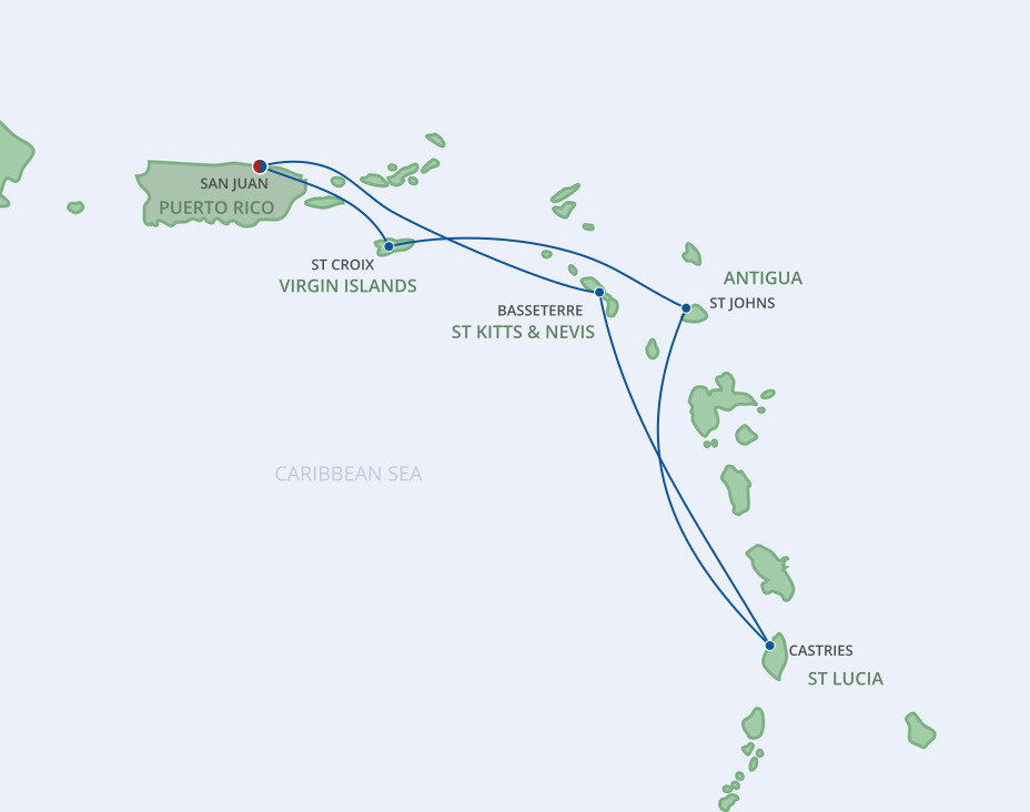 Antigua has a beach for every day of the year— literally. But the island experience goes beyond 365 distinct ribbons of white sand and clear waters. In the capital city of St. John's, you’ll discover charming candy-colored architecture, lively markets, and a beautiful baroque cathedral. And smiling locals greet you everywhere you go. On the southern coast, you can explore Nelson’s Dockyard, a centuries-old British naval base built by Admiral Horatio Nelson. Past Antigua’s yacht-studded coastline, you’ll find upscale boutiques, wild forest trails, hidden coves, and coral reefs bustling with tropical fish. But the best way to really see the island is from up above, so cruise to Antigua and hop into a helicopter for a panoramic look at lush jungles, golden beaches, and the nearby volcanic island, Montserrat.