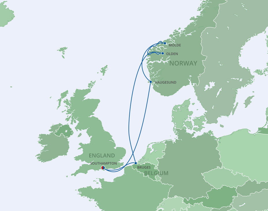 Known as the Town of Roses, Molde offers all of the stunning beauty associated with Norway. White clapboard houses sit alongside a sparkling fjord overlooking the city's famous panoramic view of 222 mountain peaks. Ships will dock at the Port of Molde & Romsdal.