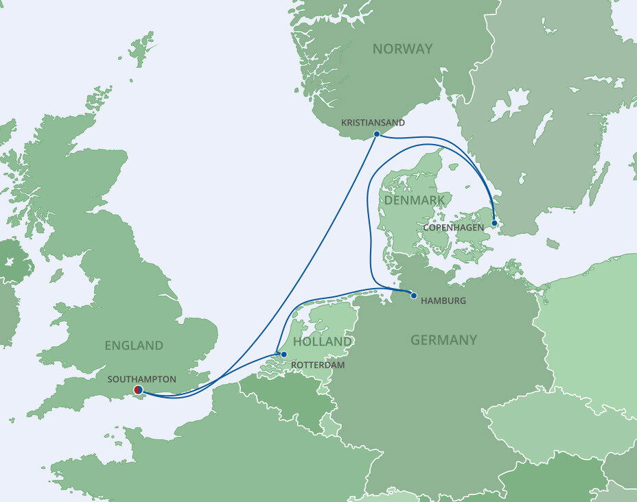 Set on the shores of a sparkling fjord, cosmopolitan Kristiansand is the largest city in Southern Norway. It has a cultural and tranquil atmosphere, a blend of contemporary and traditional architecture, and a natural beauty woven throughout and beyond the city. Ships will dock at the cruise terminal.