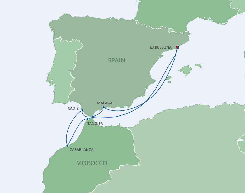 Morocco's largest city is a vision in contrasts, modern neighbourhoods host whitewashed houses along broad, tree-lined avenues, while the walled Old Medina presents narrow alleys and traditional architecture. Casablanca is your gateway to Morocco's interior and the exotic 'Imperial Cities' of Rabat and Marrakech. Ships will dock at the port of Casablanca.