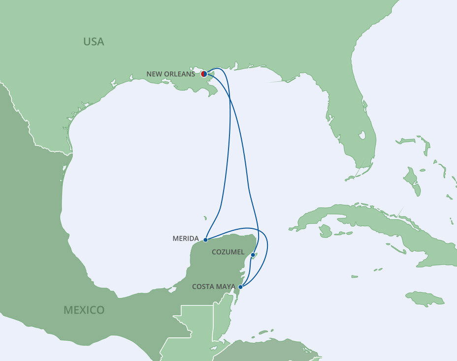 New Orleans, Louisiana is one of the most iconic cities in America due to its historic streets, charming architecture, epic festivals, and mouthwatering cuisine. Music is everywhere, people live to eat and every day is a party in the birthplace of Jazz. Ships will dock at this port.