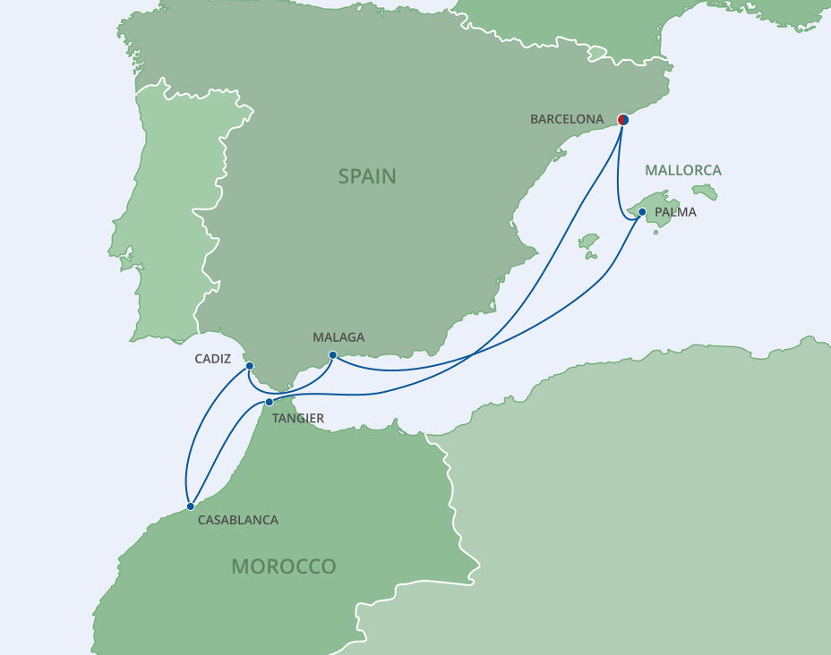 Morocco's largest city is a vision in contrasts, modern neighbourhoods host whitewashed houses along broad, tree-lined avenues, while the walled Old Medina presents narrow alleys and traditional architecture. Casablanca is your gateway to Morocco's interior and the exotic 'Imperial Cities' of Rabat and Marrakech. Ships will dock at the port of Casablanca.