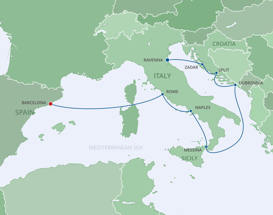 Messina is located on the northeastern corner of Sicily and is the panoramic gateway to the island. Sitting on a sickle-shaped harbour and under the gaze of Mt. Etna, the city is a patchwork of churches and antique palaces. Ships will dock at the cruise terminal.