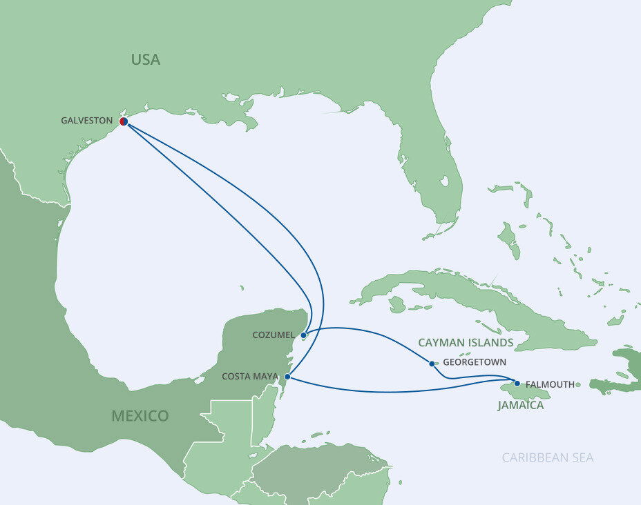 Located on the Yucatan peninsula, Costa Maya is privy to some of the best natural wonders, historic structures, and scenic views in Mexico. Built to predominately cater to cruisers, it offers sandy beaches, coral reefs, Mayan ruins, intriguing animal encounters, and exhilarating activities. Ships will dock at this port.