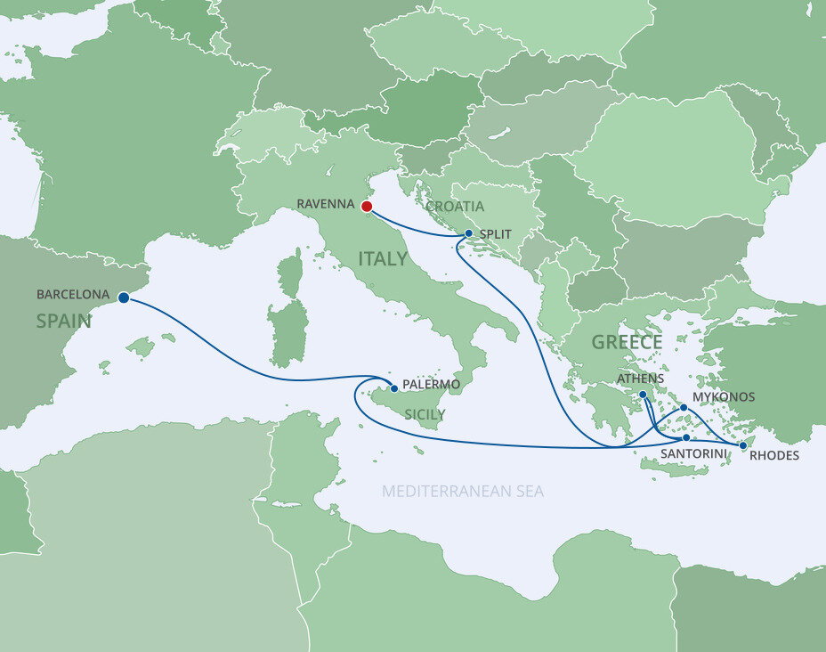 Ravenna, “The Mosaic City”, is best known for its churches which date back 1,500 years and are decorated with stunning Byzantine mosaics. If you're not staying in Ravenna at the end of your cruise, Bologna it's approximately 85 kms (53 miles) away, and Venice is approximately 140 kms (87 miles) away - a journey that takes about 2 hours by train.