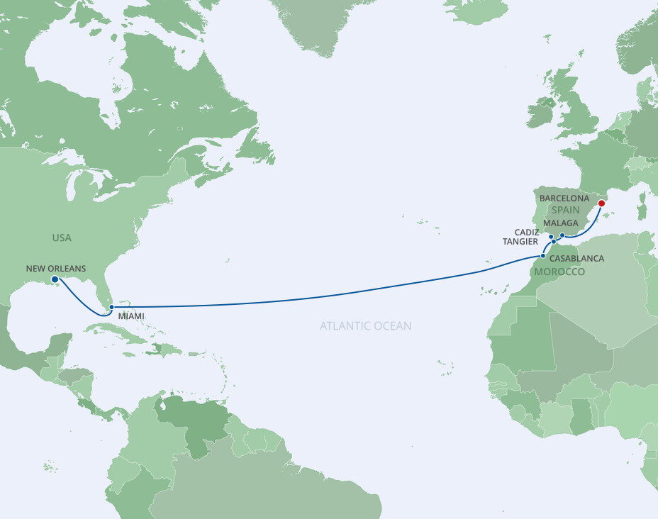 This multicultural city where the sun rules supreme is more than just a cruise port. Palm-lined causeways stretch across luminous Biscayne Bay as Miami rises in a gleam of glass towers, Art Deco curves, and tropical colour. Along Ocean Drive in South Beach, pastel facades from the 1930s glow beneath the Florida sun, while nearby Little Havana hums with domino parks, cigar shops, and the aroma of Cuban coffee. Beyond the shoreline, calm waters, yacht marinas, and breezy promenades frame a city shaped by Caribbean rhythms and sunlit coastal glamour.