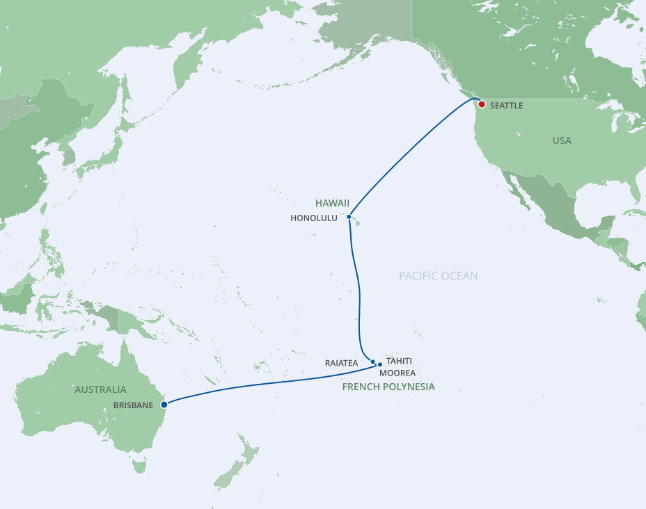 The island's unique geography makes Moorea one of French Polynesia's most breathtaking islands. Eight mountain peaks carpeted in lush vegetation rise from a translucent lagoon and two tranquil bays. Ships will anchor offshore and tenders will be provided to the shore.