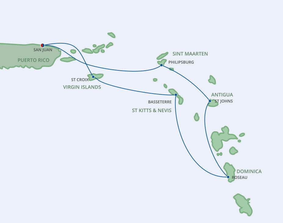 San Juan's picturesque cobblestone streets, plazas and chapels reflect its Spanish heritage. But the second oldest city in the Americas also boasts fine beaches, lush rainforests, verdant mountainsides, imposing forts and a lovely tropical climate. Ships will dock at this port.