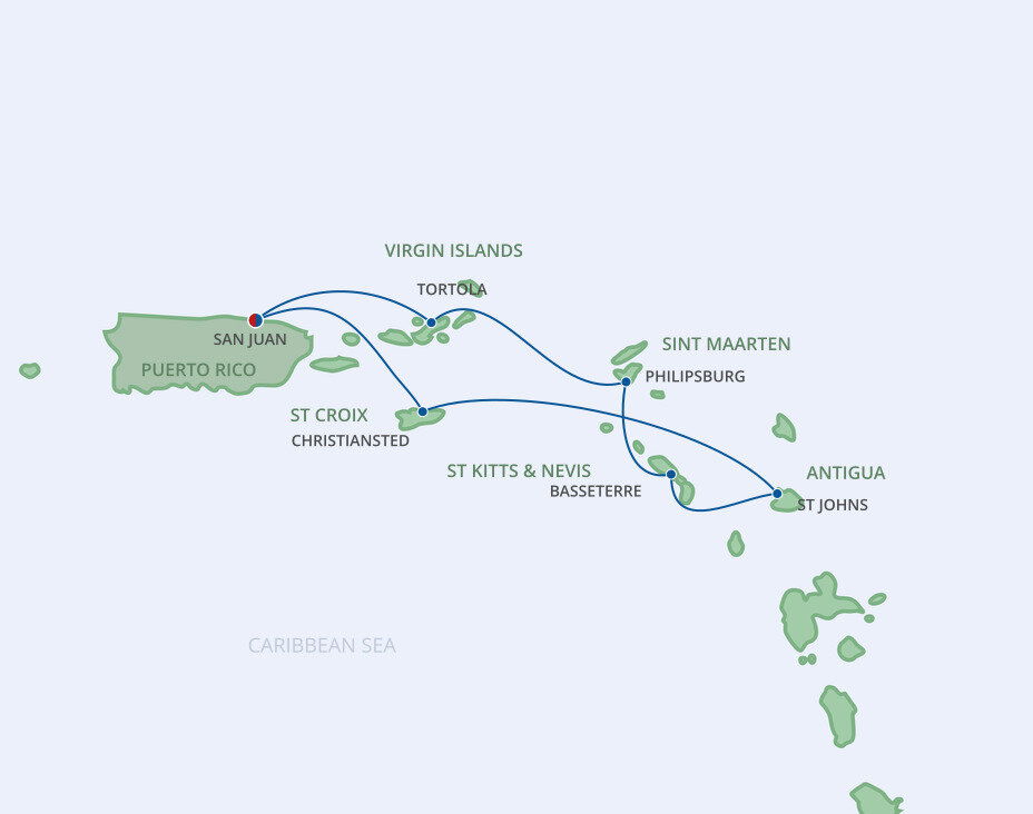 Antigua has a beach for every day of the year— literally. But the island experience goes beyond 365 distinct ribbons of white sand and clear waters. In the capital city of St. John's, you’ll discover charming candy-colored architecture, lively markets, and a beautiful baroque cathedral. And smiling locals greet you everywhere you go. On the southern coast, you can explore Nelson’s Dockyard, a centuries-old British naval base built by Admiral Horatio Nelson. Past Antigua’s yacht-studded coastline, you’ll find upscale boutiques, wild forest trails, hidden coves, and coral reefs bustling with tropical fish. But the best way to really see the island is from up above, so cruise to Antigua and hop into a helicopter for a panoramic look at lush jungles, golden beaches, and the nearby volcanic island, Montserrat.